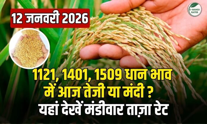 Aaj Ka Dhan Ka Bhav: 12 जनवरी 2026 को धान बाजार में 1121, 1401 और 1718 किस्मों में मजबूती रही। बरवाला, फतेहाबाद और कोटकपुरा मंडियों में टॉप भाव दर्ज हुए, जबकि 1509, 1885 और PB-1 किस्मों में चुनिंदा मंडियों में ऊँचे रेट मिले। फटाफट देखें आज के ताज़ा रेट…