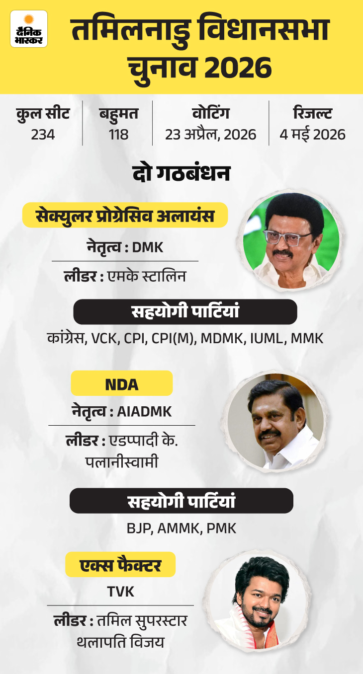 तमिलनाडु में DMK+ Vs AIADMK, एक फेज में चुनाव