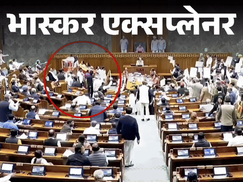 सवाल-3: स्पीकर बिरला को संसद में क्या होने की आशंका थी? जवाब: स्पीकर ओम बिरला ने कहा कि संसद में कुछ अप्रत्याशित हो सकता था, जिससे लोकतंत्र की परंपरा तार-तार हो जाती। स्पीकर बिरला के मुताबिक, 4 फरवरी को विपक्ष के कई संसदों ने उनके चैंबर का भी घेराव किया था। ऐसे में कयास लगाए जा रहे हैं कि संसद में दो तरह की ‘अप्रत्याशित घटना’ हो सकती थी- राजनीतिक विवाद या सुरक्षा पर खतरा। सदन में इससे पहले हुई अप्रत्याशित घटनाओं से समझते हैं कि लोकसभा में राजनीतिक या सुरक्षा की नजर से क्या अप्रत्याशित हो सकता था… सदन में हुई अप्रत्याशित राजनीतिक घटनाएं 1988: तमिलनाडु विधानसभा में पुलिस को लाठीचार्ज करना पड़ा 1989: जे. जयललिता की साड़ी खींची 1997: उत्तर प्रदेश में विधायकों ने कुर्सियां और माइक फेंके 2014: कांग्रेस सांसद ने चलाया मिर्ची स्प्रे 2016: विधायक ने मंत्री पर जूता फेंका सदन की सिक्योरिटी अप्रत्याशित घटनाएं 1994: विजिटर गैलरी से एक आदमी कूद गया 2001: संसद भवन पर आतंकी हमला 2002: ओडिशा विधानसभा में बजरंग दल, विहिप का हंगामा 2023: संसद में घुसे 2 युवक, पीले धुएं वाले कैनिस्टर छोड़े सवाल-4: अगर हंगामा बढ़ता या कुछ अप्रत्याशित होता, तो फिर क्या होता? जवाब: संसद में अगर कोई अप्रत्याशित घटना या बहुत ज्यादा हंगामा होता है, तो सिक्योरिटी प्रोसिजर और प्रोटोकॉल तुरंत एक्टिव हो जाता है… 1. सदन की कार्यवाही रोकना 2. सांसदों और मंत्रियों की सुरक्षा 3. सुरक्षा चूक पर लॉकडाउन 4. कानूनी सख्त कार्रवाई ———– ये खबर भी पढ़िए… राज्यसभा में मोदी की स्पीच के दौरान विपक्ष का वॉकआउट:PM बोले- कांग्रेस के पास न सोच न इच्छाशक्ति, इसका परिणाम देश को भुगतना पड़ा प्रधानमंत्री नरेंद्र मोदी राज्यसभा में राष्ट्रपति के अभिभाषण पर धन्यवाद प्रस्ताव का जवाब दे रहे हैं। स्पीच के दौरान विपक्ष ने नारेबाजी शुरू कर दी। विपक्षी नेताओं ने कहा कि राहुल गांधी को बोलने दिया जाए, तानाशाही नहीं चलेगी। इस पर प्रधानमंत्री ने कहा कि खड़गेजी की उम्र देखते हुए उन्हें बैठकर नारे लगाने की इजाजत दी जाए। पूरी खबर पढ़िए…