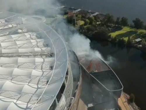 पर्थ के ऑप्टस स्टेडियम में आग लगी:पर्थ स्कॉर्चर्स और सिडनी सिक्सर्स में BBL मैच चल रहा था, कोई हताहत नहीं