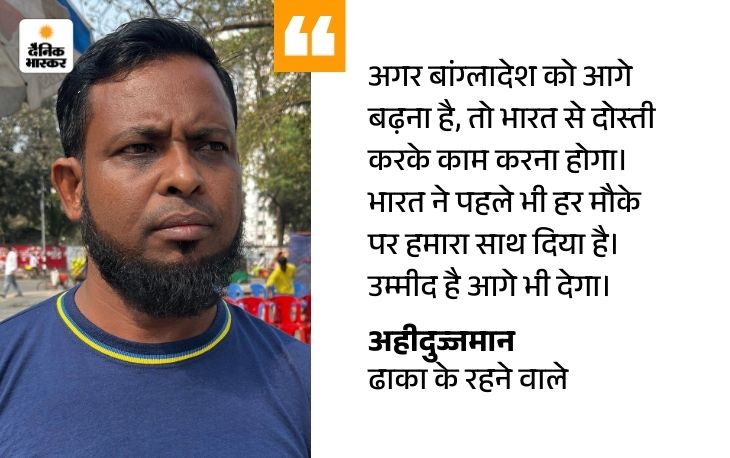 मुस्लिम बोले- भारत से दोस्ती जरूरी, जमात पाकिस्तान के एजेंडे पर शहीद मीनार के पास मिले अहीदुज्जमान चुनाव के बारे में कहते हैं, ‘देश में चुनाव के लिए जैसा माहौल होना चाहिए, वैसा है नहीं। ये चुनाव मजाक की तरह हो रहा है। स्टूडेंट्स ने आंदोलन करके शेख हसीना को हटा दिया। अब उनकी पार्टी NCP ने जमात-ए-इस्लामी से गठबंधन कर लिया। वे अपनी पार्टी के अंदर ही महिलाओं से भेदभाव करते हैं।’