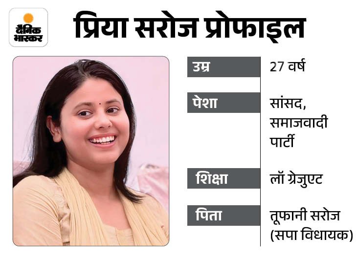 महज 25 साल की उम्र में वह भाजपा के बीपी सरोज को हराकर लोकसभा तक पहुंचने में सफल रहीं। प्रिया सरोज के पिता तूफानी सरोज भी मछलीशहर लोकसभा सीट से 3 बार सांसद रहे हैं। वो साल 1999, 2004 और 2009 में लोकसभा चुनाव जीते थे।