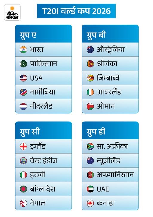 7 फरवरी को USA से भारत का पहला मैच भारत अपने वर्ल्ड कप अभियान की शुरुआत 7 फरवरी को मुंबई में USA के खिलाफ करेगा। उसके बाद 12 फरवरी को नामीबिया से दिल्ली, 15 फरवरी को पाकिस्तान से कोलंबो और 18 फरवरी को नीदरलैंड से अहमदाबाद में खेलेगी। उसके बाद सुपर-8 के मैच होंगे। जिनकी तारीख और वेन्यू ग्रुप स्टेज की रैंक पर निर्भर करेगी।