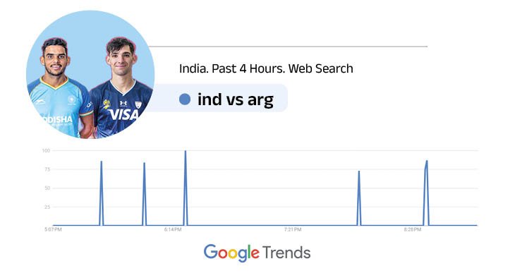 भारत के ब्रॉन्ज मेडल जीतने के बाद IND Vs ARG गूगल के ट्रेंड में आया। इसे पिछले कुछ समय में खूब सर्च किया गया। देखें गूगल ट्रेंड