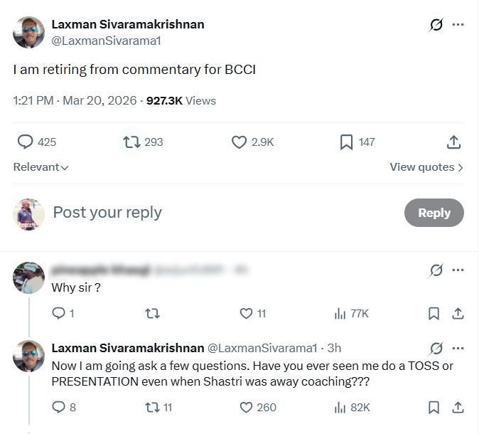 शिवरामकृष्णन ने यह भी कहा कि उनके रिटायरमेंट के पीछे TV प्रोडक्शन से जुड़ी एक बड़ी कहानी है, जो जल्द सामने आएगी। एक यूजर द्वारा रंगभेद का मुद्दा उठाने पर उन्होंने इसे सही ठहराया, जिससे विवाद और गहरा गया है।