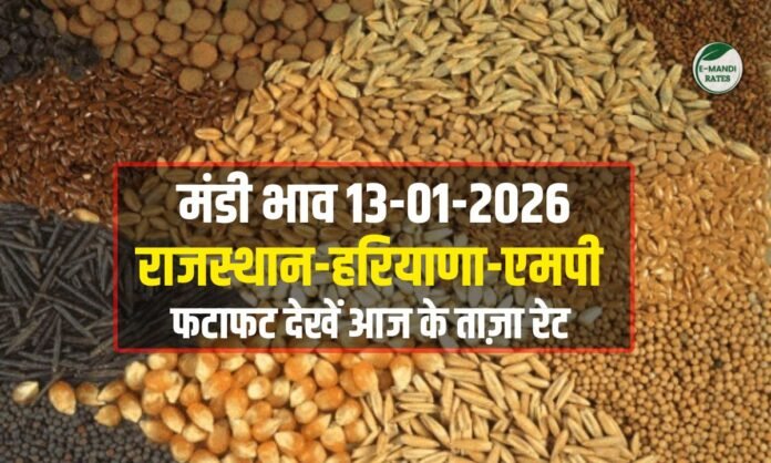 Mandi Bhav Today 13 January 2026: आज की मंडी रिपोर्ट में मूंग, नरमा, चना, तिल और ग्वार में चुनिंदा मंडियों में ऊंचे भाव दर्ज हुए। रायसिंहनगर, सिरसा, पिपरिया और ऐलनाबाद टॉप रहे। किसानों को बिक्री से पहले मंडी-तुलना कर सही समय और स्थान चुनने की सलाह।