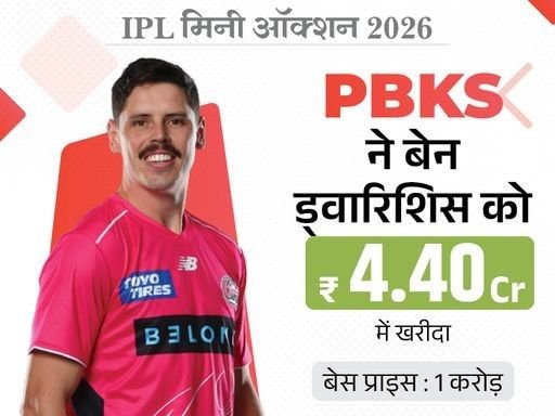 इंडियन प्रीमियर लीग (IPL) के 19वें सीजन के लिए आज (16 दिसंबर) अबू धाबी में चल रहे मिनी ऑक्शन में पंजाब किंग्स (PBKS) ने ऑस्ट्रेलियाई बॉलर बेन ड्वारिशिस पर 4.4 करोड़ रुपए की बोली लगाई। पूरी खबर यहां क्लिक कर पढ़ें…