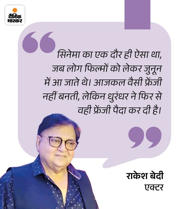 राकेश बेदी अपनी हालिया रिलीज फिल्म ‘धुरंधर’में पाकिस्तानी राजनेता जमील खान के किरदार में नजर आए हैं। ज्यादातर फिल्मों में कॉमिक किरदार निभा चुके एक्टर को इस फिल्म से एक अलग पहचान मिली है। इस फिल्म से पहले राकेश बेदी की ‘चश्मे बद्दूर’, ‘एक दूजे के लिए’ जैसी कई फिल्में चर्चा में रही हैं।