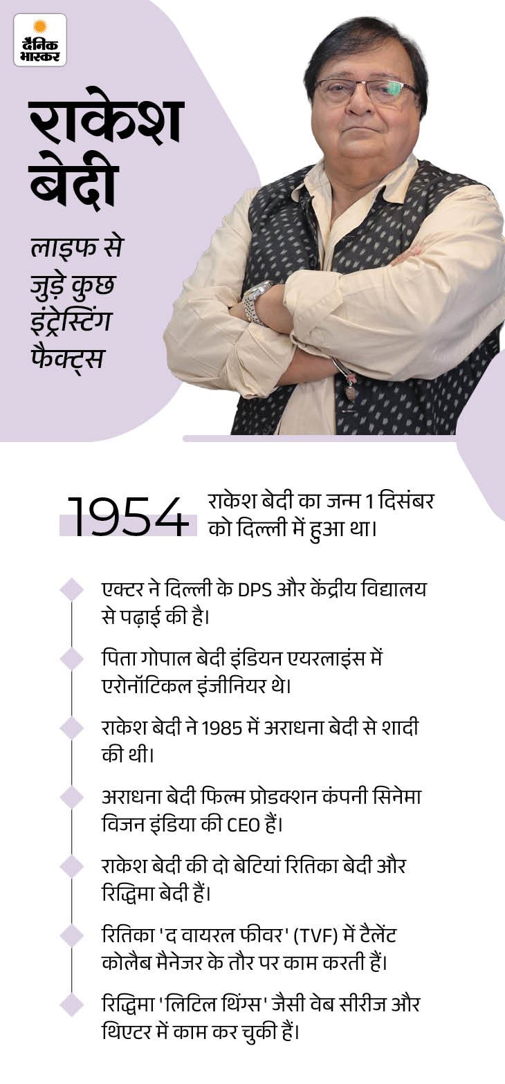 ‘एक दूजे के लिए’ का ऐसा प्रभाव था कि इस फिल्म के लिए राकेश बेदी को जान से मारने की धमकियां मिलने लगी थीं। ना सिर्फ फिल्मों में बल्कि टीवी शो में भी राकेश बेदी ने कई किरदार निभाए हैं। राकेश बेदी कहते हैं कि जब उनका टीवी शो ‘ये जो है जिंदगी’ आया, तब पता चला कि टीवी की ताकत कितनी बड़ी है।