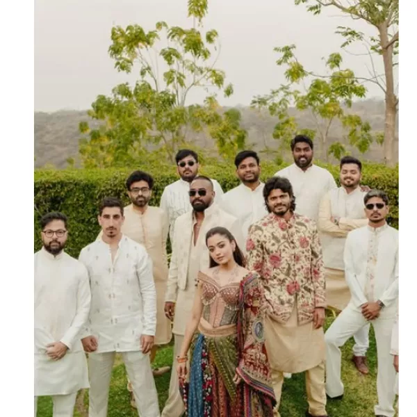 The actress was the modern bride who wore traditional Indian modern craftsmanship from the shelves of Torani, who had customised the mehendi outfits of the actress and her husband, Vijay Deverakonda. Their outfit was designed with inspiration from Hyderabad’s cultural hub. Vijay’s mehendi outfit was inspired by traditional South Indian garments such as the pancha, veshti and lungi. A report by Vogue speaking of Rashmika’s mehendi outfit said: