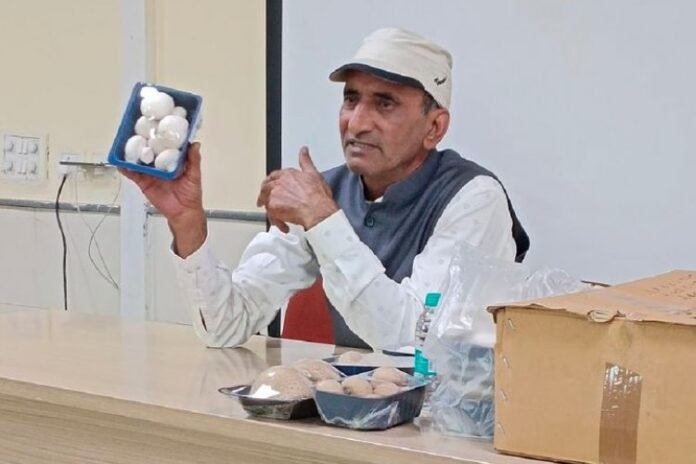 Pawan Kumar established his farm in Ujua in 2016 after training at a Krishi Vigyan Kendra, which also assisted with the initial setup. He later received industrial training from the HAIC training centre in Murthal and the Directorate of Mushroom Research. After starting with a single room and six tonnes of compost that yielded 1,200 kg of mushrooms, he now operates with 70 tonnes of compost and also trains young farmers.