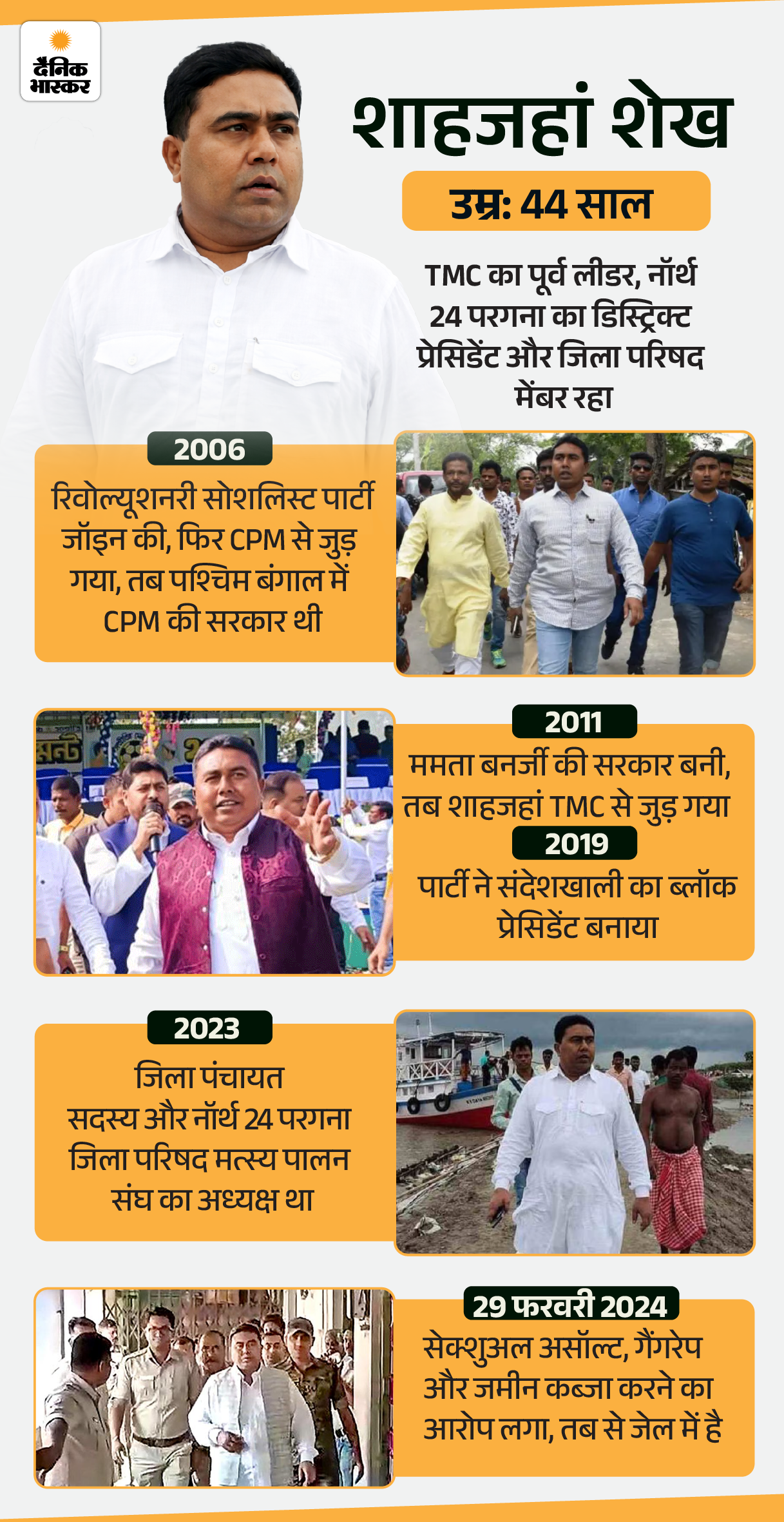 विक्टिम नंबर-4 शाहजहां जेल न जाता, तो जमीन वापस नहीं मिलती 2024 में राशन घोटाले में शेख शाहजहां के घर ईडी की रेड पड़ी थी। इसी के बाद संदेशखाली की महिलाओं ने उसके खिलाफ यौन उत्पीड़न और जमीन हड़पने की शिकायत की थी। इस मामले में करीब 50 महिलाओं ने याचिका दायर की थी, जिसके बाद शाहजहां शेख को TMC ने पार्टी से निकाल दिया था।