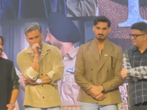 फिल्म बॉर्डर 2 का नया गाना ‘जाते हुए लम्हों’ सोमवार को रिलीज किया गया। इस मौके पर आयोजित स्पेशल स्क्रीनिंग में फिल्म के कलाकार अहान शेट्टी अपने पिता सुनील शेट्टी के साथ पहुंचे। इवेंट के दौरान सुनील शेट्टी बेटे के संघर्ष पर बात करते हुए भावुक नजर आए।