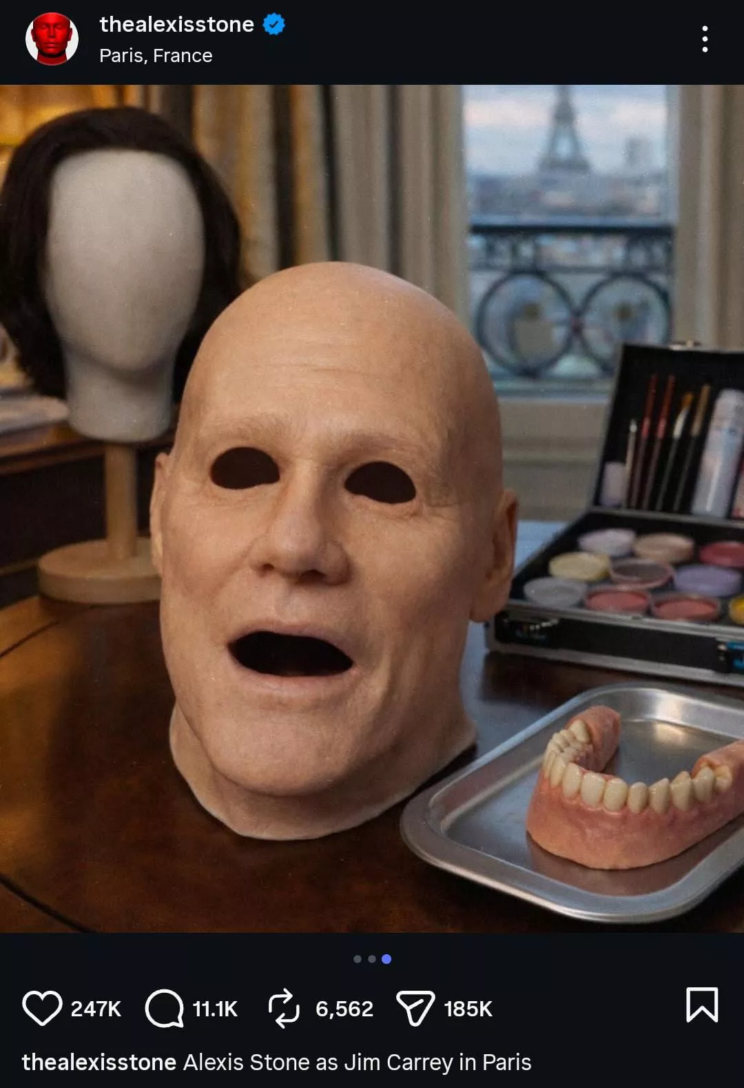 “Alexis Stone as Jim Carrey in Paris.”